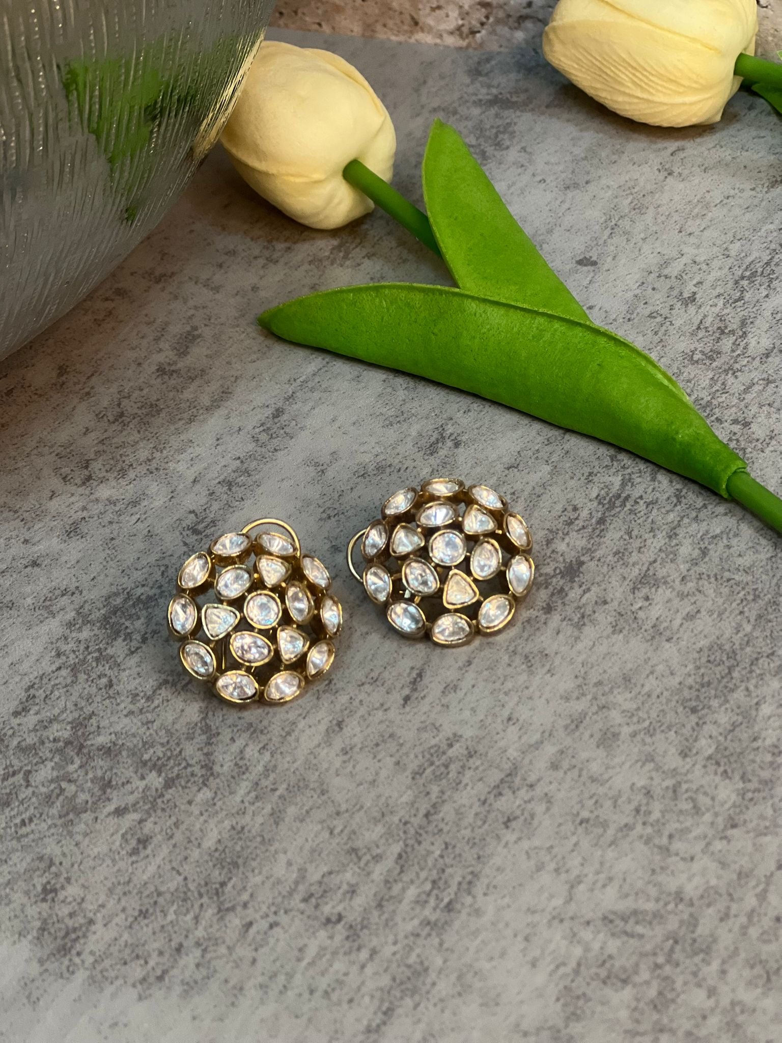 A mesmerizing dome of luminous crystals intricately set in gold. These timeless studs bring elegance and sparkle to elevate any look effortlessly.